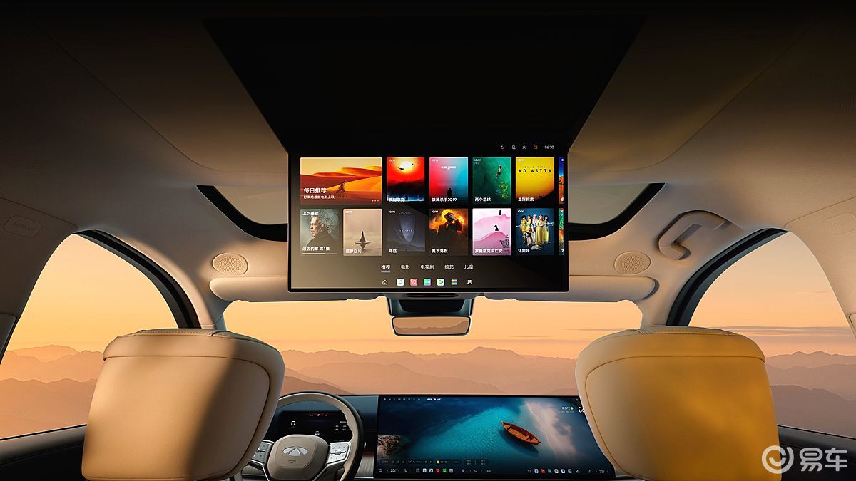 30吋6K一体寰宇屏,配合17.3吋后舱娱乐屏,构建前后双大屏观影系统。