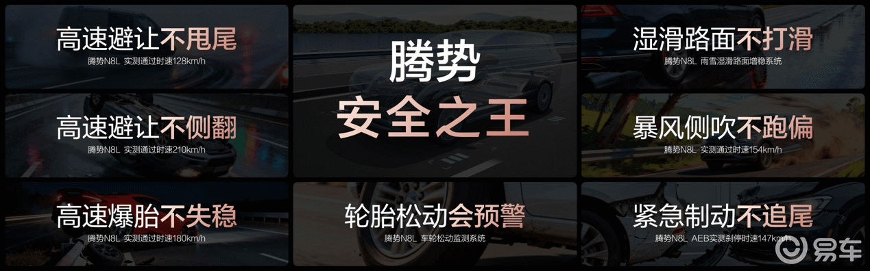 车身采用2000MPa热成型钢,标配9气囊,高速避稳、爆胎不失控,不愧是新能源“安全之王”!