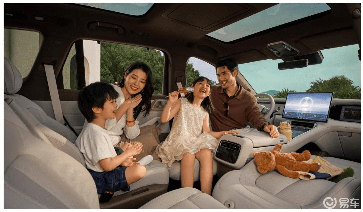 在空间与舒适维度,腾势 N8L 将 “超豪华移动大平层” 的概念落到实处。其车身尺寸达到 520019991820mm,套内空间面积达 6.11㎡,人均空间超过 1㎡,再加上超 1.3 米的车内垂直高度,彻底打破 “第三排仅应急” 的行业局限,实现 “三排一样大,座座都宽敞”—— 即便是六位身高 1.8 米的成年人同时乘坐,也能保持舒展坐姿。第三排座椅不仅支持最大 121° 的角度调节,还可实现 100mm 的前后滑移,让后排乘客的舒适度与前排持平。全车六座均为电动座椅,支持 “一键切换” 四大场景模式,能根据家庭出行、露营装载等不同需求,组合出 “4+N” 灵活布局,适配多元生活场景。更具人文关怀的是 “迎宾模式”:解锁车辆时车身自动下降 5cm,最低离地间隙仅 11.5cm,老人、小孩无需踮脚就能轻松上车,细节之处尽显对家庭用户的关怀。此外,车内设有 49 处收纳空间,搭配 51L 后备厢隐藏式储物盒,从日常的手机、水杯到露营所需的帐篷、装备,都能找到专属收纳位置,实现 “全场景收纳自由”,从空间设计到功能配置,全方位为家庭成员打造舒适便捷的出行环境,构筑豪华舒适的移动港湾。