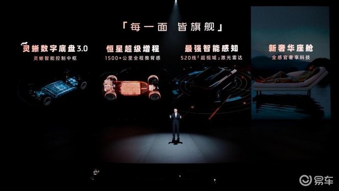 智己LS9全系皆Ultra,将恒星超级增程、灵蜥数字底盘3.0、双向24°超大角度智慧四轮转向、520线超视域激光雷达+英伟达Thor芯片、主驾座椅4D机械按摩等150余项行业顶尖配置全系标配。