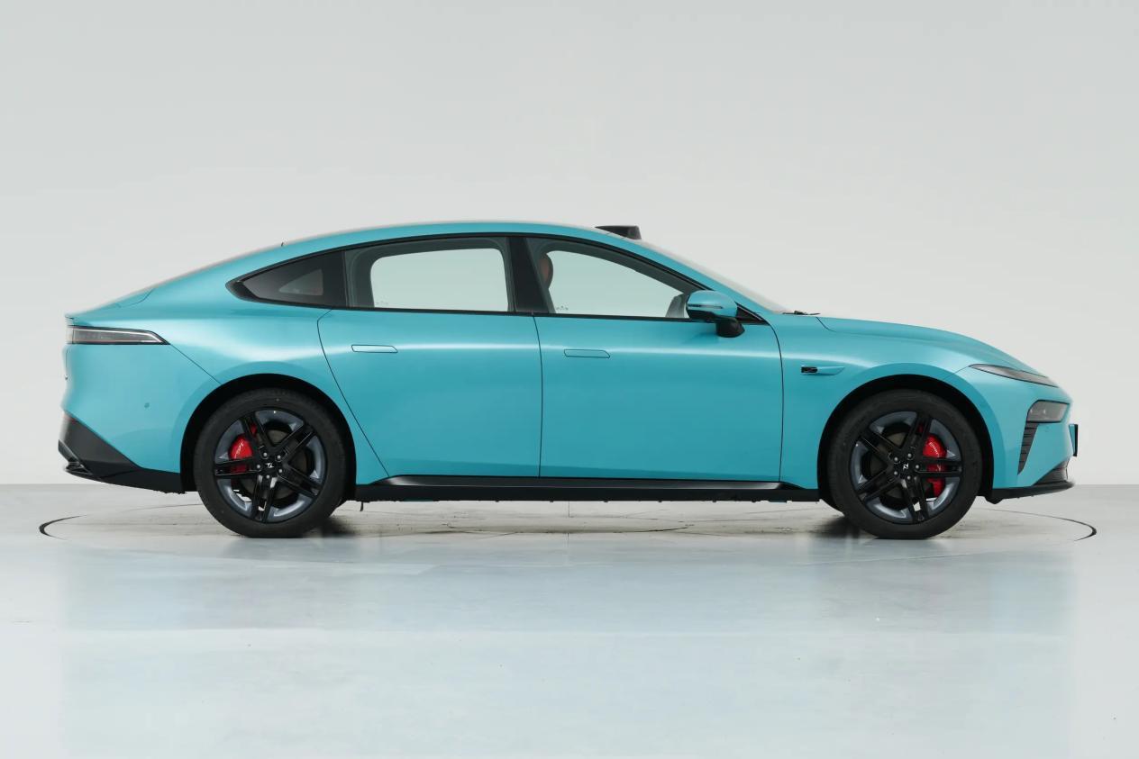 侧面是动感的溜背轿跑造型,车顶线条顺滑流畅,整车共有23处空气动力学部件优化,风阻系数仅为0.209Cd,对续航的提升有帮助,采用隐藏式门把手和双五辐式运动轮毂,另外后视镜集成了驾驶辅助小蓝灯,可以提醒道路上的其他交通参与者这台车处于辅助驾驶工作状态。