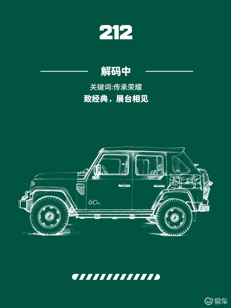 车讯 日前,212公布了广州车展新车预告,皮卡、60周年软顶版和一款特别版车型即将发布。