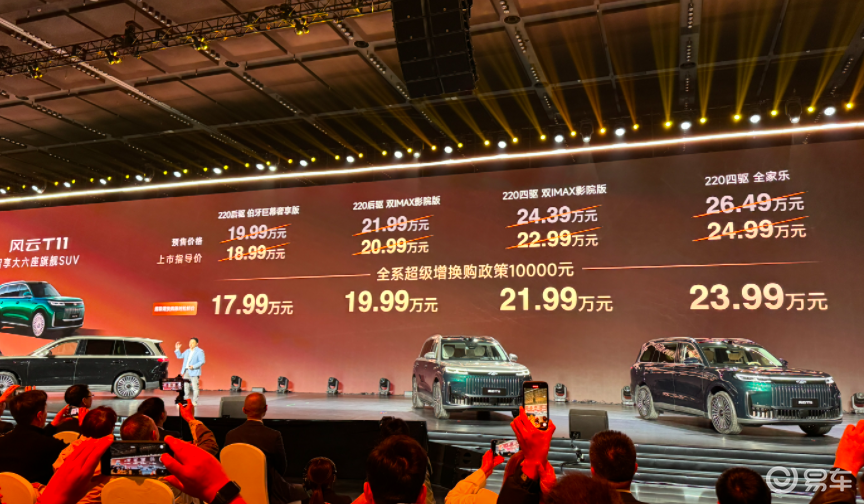 从竞品对比看,风云T11在核心参数上具备显著优势:较问界M7轴距多出90mm,第三排舒适性更优;对比银河M9,其纯电续航多50km,且配备后排娱乐屏等豪华配置;与乐道L90相比,虽不支持换电,但起售价低近万元。预售数据印证了产品竞争力——48小时锁单突破2.2万台,其中四驱高配车型占比达62%,显示用户愿为高端配置支付溢价。