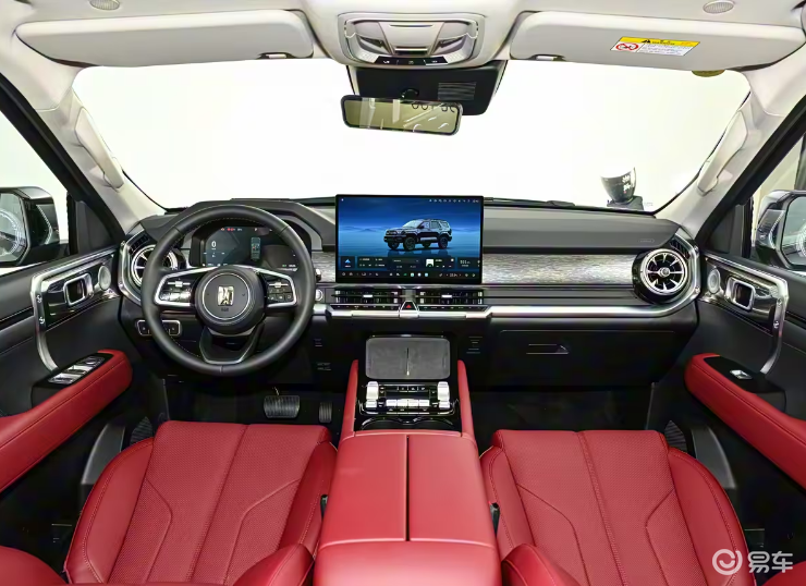 内饰方面,全新坦克400的内饰最明显的改变是换装了怀挡式设计,这一改动释放了副仪表台的空间,使其被重新规划为双50W无线充电面板和一个集成了车辆控制、座椅调节、动力模式切换的物理按键面板。
